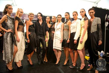 A photo of his final collection is below. Dmitry says that he was “inspired by organic architecture”, and his collection certainly has very structured, architectural elements.