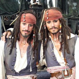 Nothing to do with Johnny Depp, who is pictured above with his own body double!