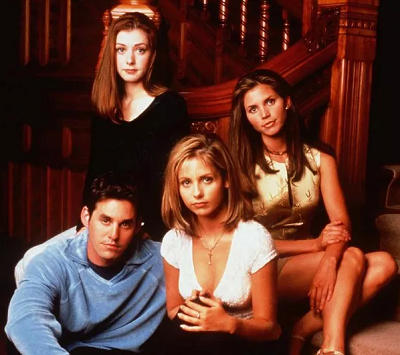 After starring on Buffy, Whedon offered Carpenter a role on a spinoff called Angel, starring David Boreanz. In this cast photo, Carpenter is again on the right.