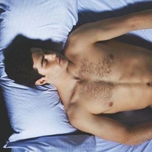 Sleeping. In bed. No clothes. No covers. Face up.