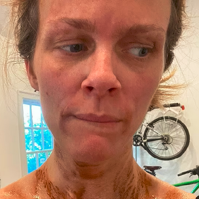She did a laser treatment, and she’s in the middle of what they call the “downtime” when you peel. Look at her neck and you can tell.