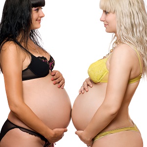 In the photo, supposedly taken earlier this year, she and a friend are in someone’s kitchen. The girls are both very pregnant and seem to be admiring each other’s baby bumps.