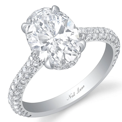 He’s got money, too, because the engagement ring is major. It is a two-and-a-half carat Neil Lane diamond ring. The Neil Lane ring shown below will run you about $50K, and that’s only a two-carat diamond in the middle.